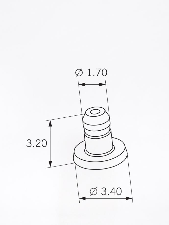 Maschio V è il pezzo singolo che compone il maschio del sistema di ancoraggio sovraradicolare Mini-Gerber PLUS. Realizzato in Valor® V, una lega preziosa per sopraffusione esente da palladio e rame, può essere fissato alla cappetta radicolare tramite sopraffusione o brasatura.