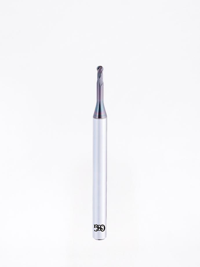 - Fresa sferica a 2 taglienti con collo lungo, ideale per lavorazioni ad alta precisione su elettrodi in rame;
