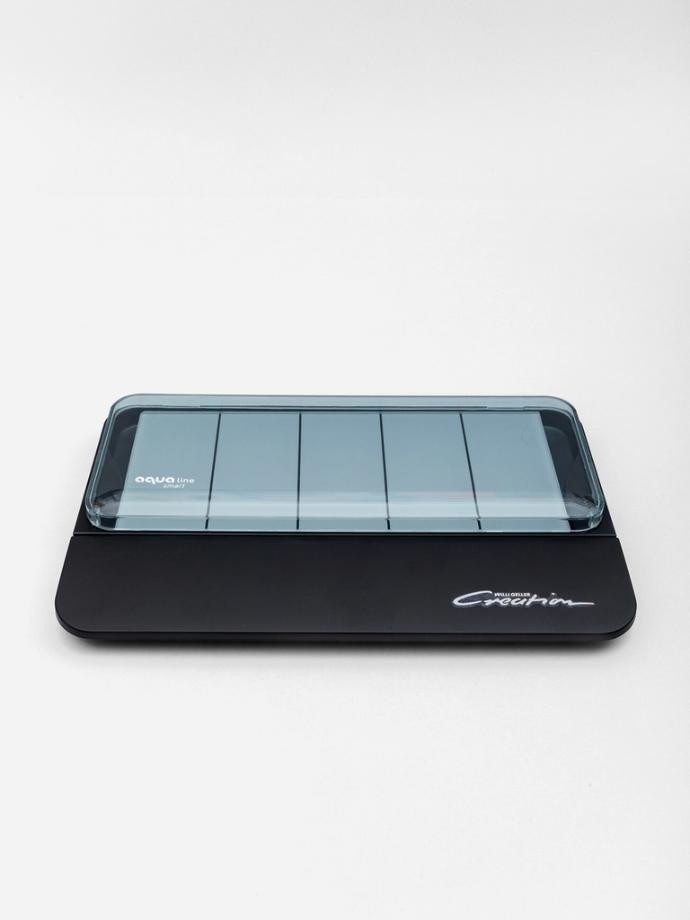 Aqualine Smart è il sistema per mantenere costante l'umidificazione delle ceramiche dentali Creation. Il vassoio è composto da una piastra in vetro chiusa da una copertura in plastica. Include le etichette autoadesive scriventi e le strisce di cellulosa assorbi-umidità.