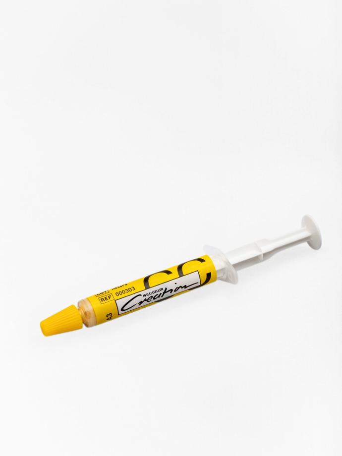 CC/Creapast è la pasta opaca ad uso odontotecnico di Creation per rivestire l’armatura in metallo. Pronta all'uso, la sua consistenza può essere modificata leggermente con il liquido universale (UF). Conferisce al moncone un aspetto leggermente lucido.