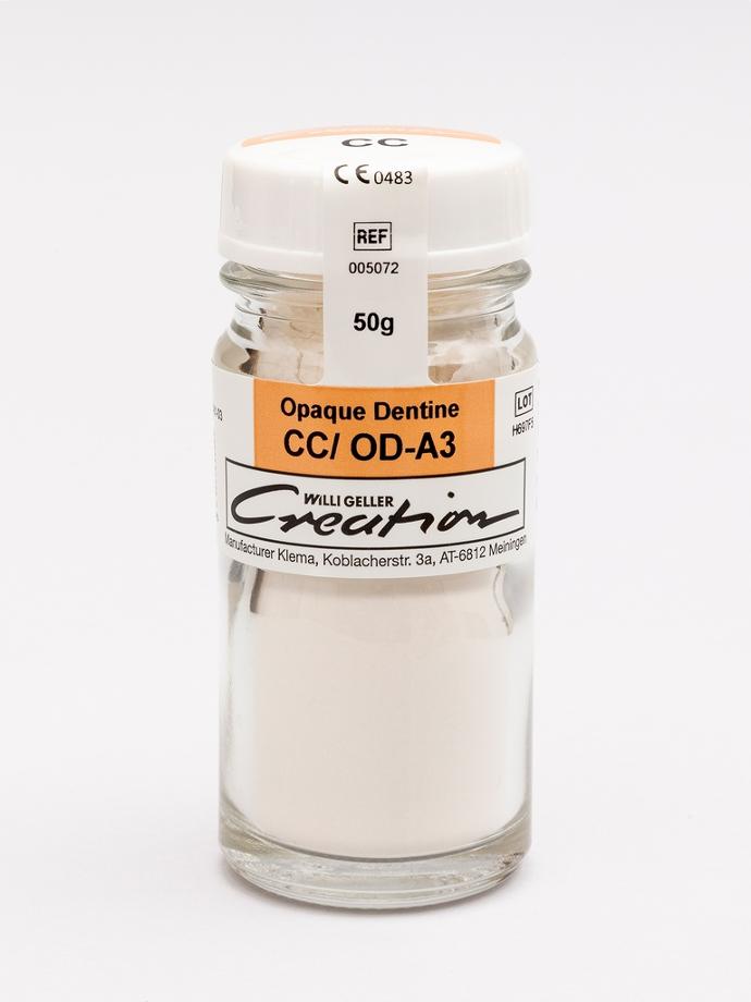 Creation CC è una metalloceramica ad alto punto di fusione con eccezionali proprietà ottiche e fisiche. Le sue masse ceramiche, perfettamente coordinate ed omogenee, offrono un'elevata resistenza alla flessione. La presenza di feldspato di potassio purissimo con cristalli di leucite micro-sottili conferisce una brillantezza naturale e una rifrazione luminosa iridescente, garantendo al contempo maggiore resistenza. Le masse per effetti consentono la creazione di tonalità uniche, permettendo di realizzare restauri estetici naturalmente sorprendenti e veri capolavori di arte odontotecnica.