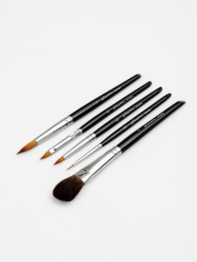 Set di pennelli per l’applicazione delle ceramiche Creation Willi Geller. Comprende le misure da I a V per l’impiego in tutte le fasi della stratificazione delle masse sui manufatti e modelli dentali.