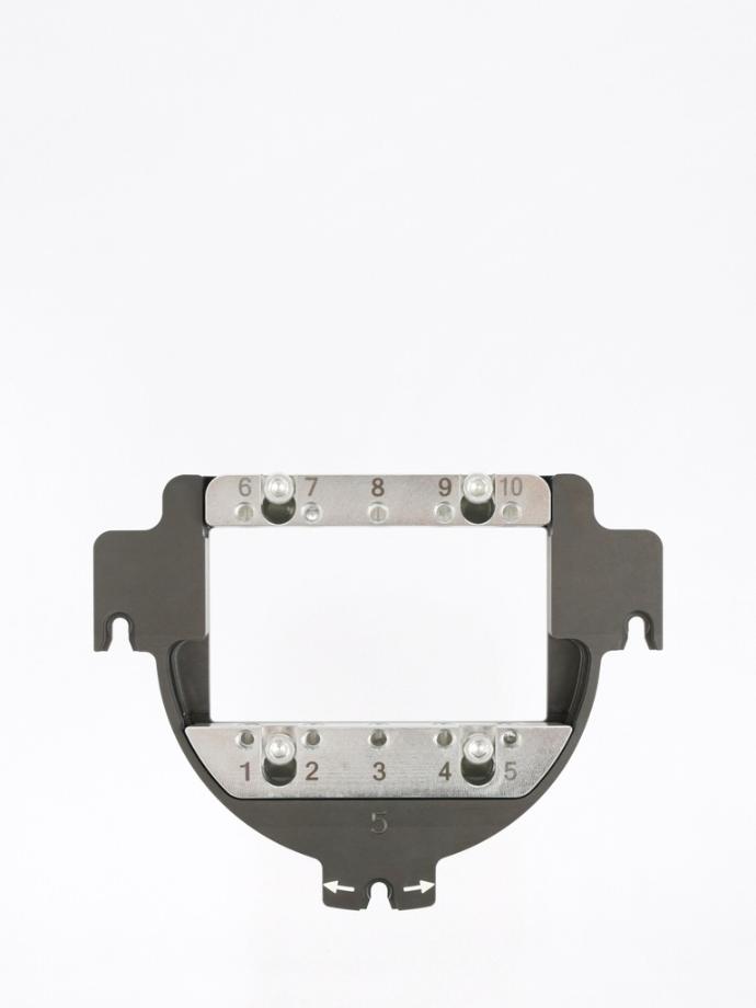 La forma chiusa ospita un massimo di 10 blocchetti fresabili, ciascuno per un alloggiamento.