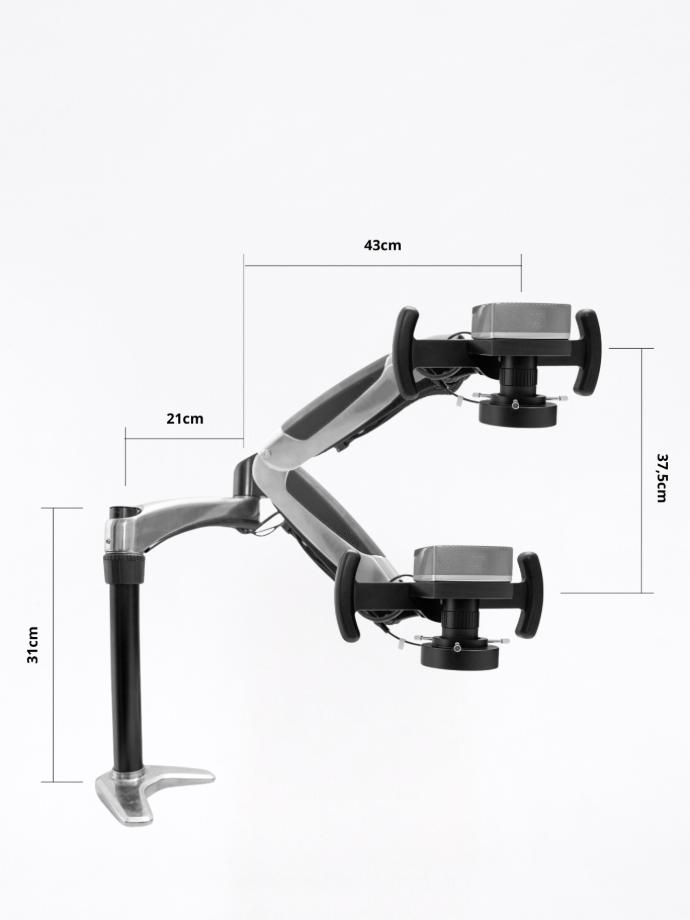 - Base di aggancio a pinza con supporto per l'asta verticale;