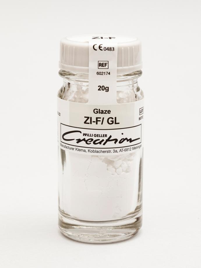 ZI-F/ Glasura GL è la ceramica in polvere di Creation per le protesi in Ossido di Zirconio che permette di esaltare la brillantezza e la lucentezza del dente, simulando l’aspetto lucido dello smalto naturale, successivamente alla cottura.